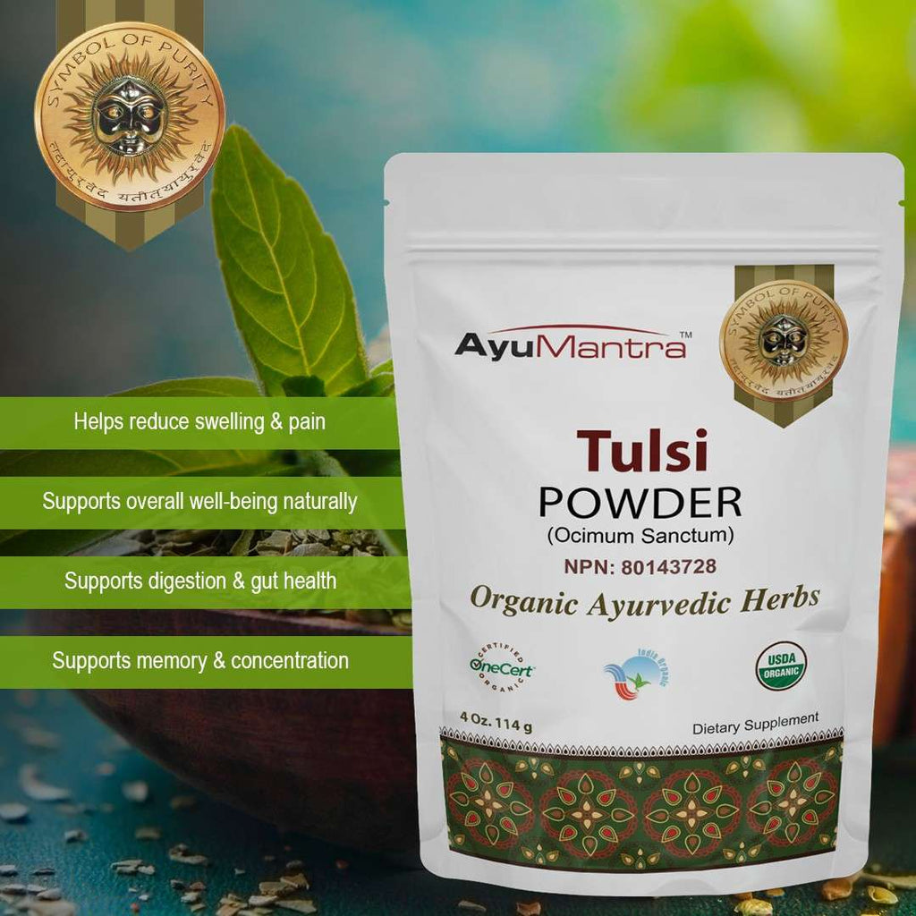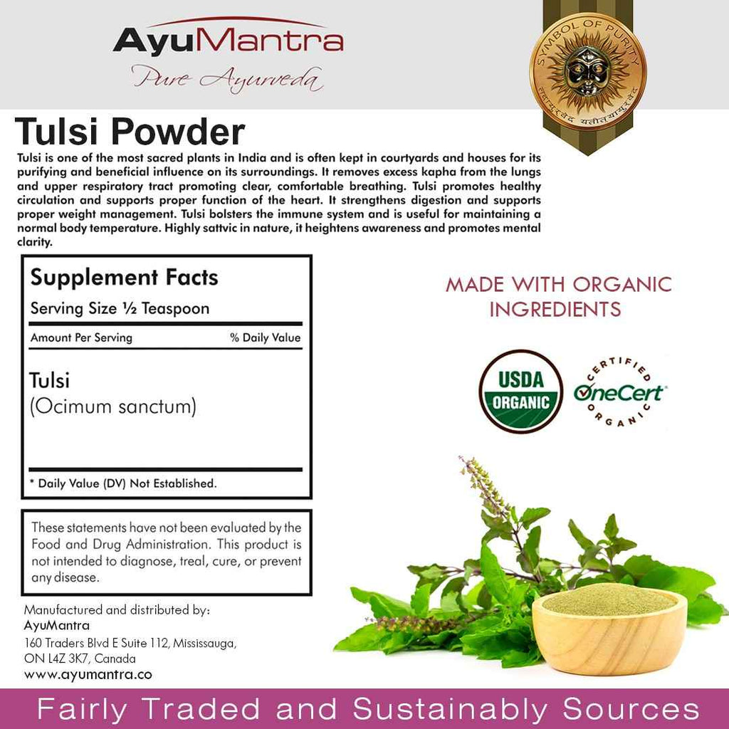 Tulsi has a pungent rasa (taste), a heating virya (energetic effect), and a pungent vipaka (post-digestive effect). Balancing for vata and kapha doshas