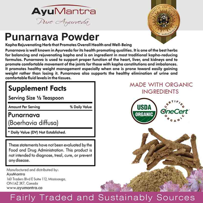 Punarnava in Ayumantra's Pharmacy comes from the treasure herbs of sacred hills of India, blessed and cherished by the locals for its rejuvenating qualities. Known to be helpful in several health conditions, this herb is the best remedy for stress, insomnia, certain skin diseases, ulcers, and more physical and mental problems that occur in the human body.