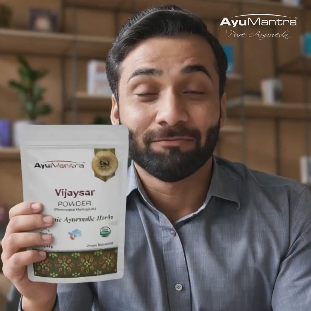 Vijaysar powder is a remedy for blood sugar problems and works as an anti-inflammatory remedy for skin problems caused due to a high glucose level in the body. Vijaysar also helps in getting rid of excess fat and natural toxins. It has antidiarrhoeal properties that also expel intestinal worms from the body. Many know it as a miraculous remedy for more than just a few problems of the body. It also improves kidney, heart, and liver health by reducing free radicals in the body. Vijayasar helps control bleeding disorders due to its Pitta pacifying and Kashaya (astringent) properties.