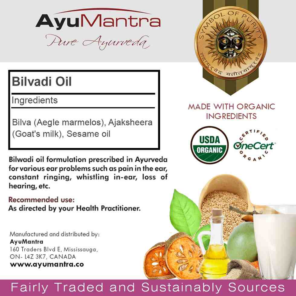 - Bilva oil is used for an Ayurvedic Panchakarma procedure called Karnapoorana wherein inflammation of the hearing apparatus and the external auditory canal is managed.
