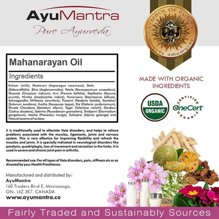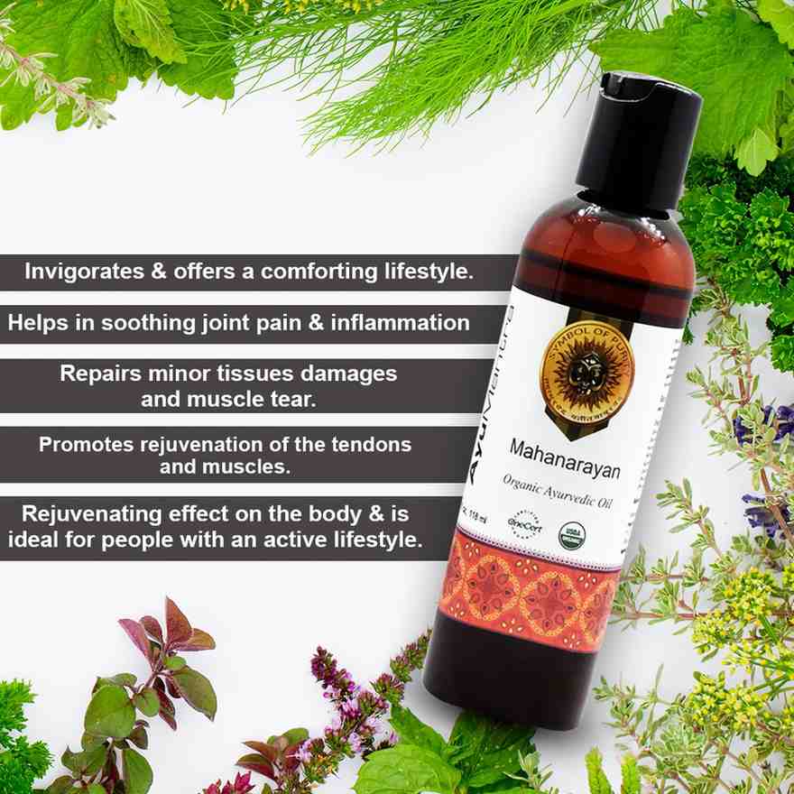 - Maha Narayan oil is a recommended herbal product by Indian ayurvedic doctors. The sesame oil used in the formulation of the product offers a calming and relaxing effect for relief from pain and inflammation.
