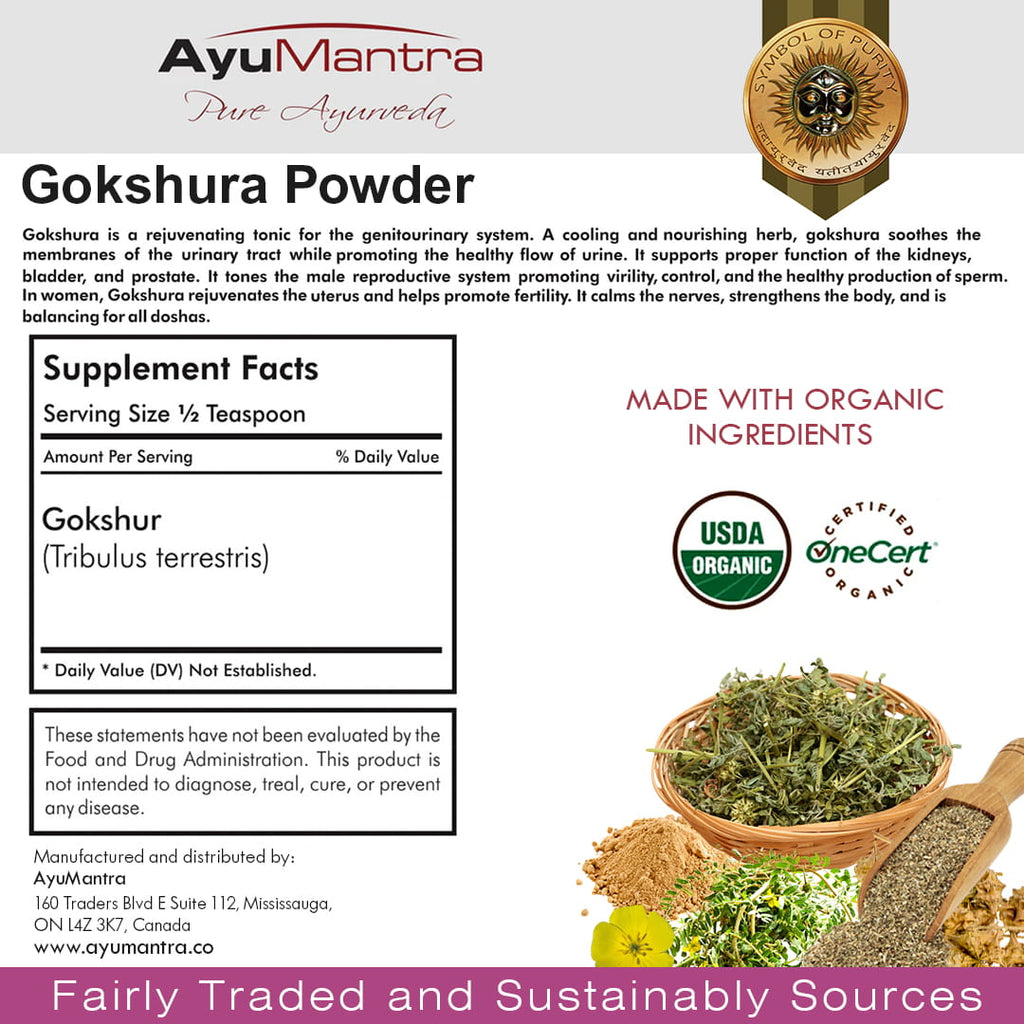 Supports male urinary tract health, improves stamina and sperm count, and promotes kidney and prostate health. Gokshura powder is a wellness remedy especially used for health issues relating to the male reproductive organs. The powder promotes kidney and prostate health naturally without any side effects. Its cooling, nourishing, cleansing, and strengthening properties rejuvenate the urogenital functioning.
