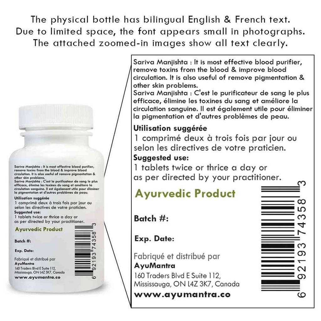 Sariva and Manjishta are believed to have synergistic effects that enhance their individual properties. They are often used in combination to treat skin disorders, such as acne and eczema, and are believed to have an anti-inflammatory effect on cells in addition to their cooling effect on the body. Optimum body temperature is maintained when used regularly and prevents frequent infections where exaggerated inflammatory responses of the body remain in check. Herbs in this combination promote the efficient elimination of wastes from the intestines, kidneys, lungs, and skin and improve blood circulation.