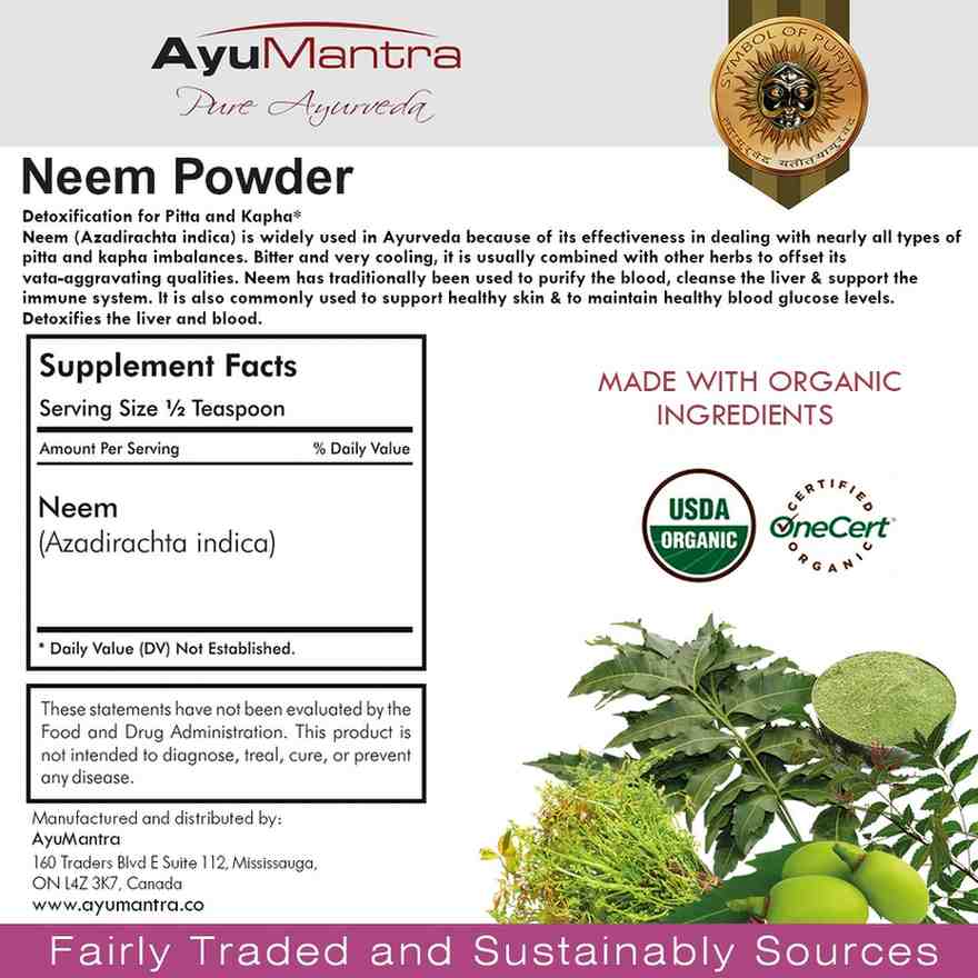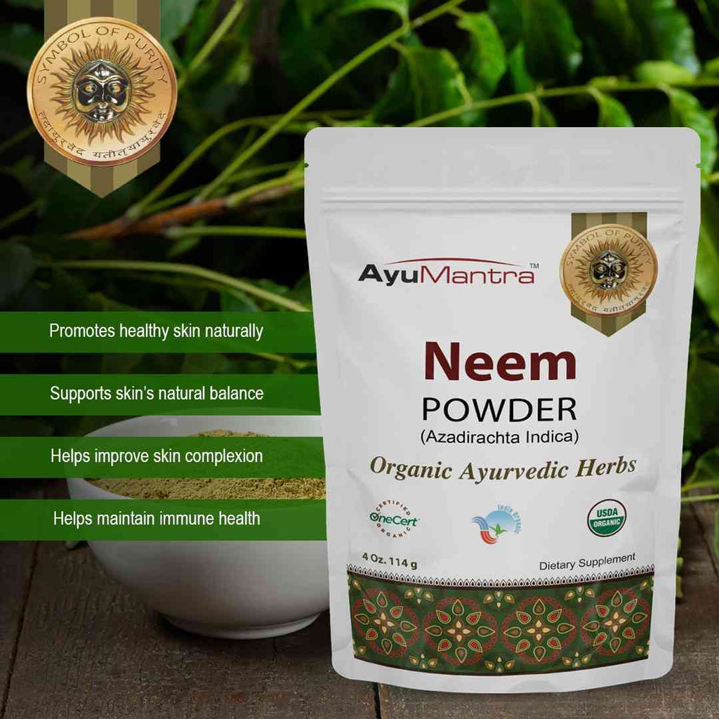 Es fördert gesunde Haut und verbessert den Teint. Es hat eine besondere Affinität zur Haut. Oft wird es mit Kurkuma und Sesamöl kombiniert. Dank seiner unglaublichen kühlenden und heilenden Eigenschaften werden die Blätter der Pflanze bei zahlreichen Beschwerden wie Allergien, Diabetes, Akne und Blut- sowie Lebertoxinen eingesetzt. Es trägt zur Regulierung der Körpertemperatur bei und stärkt das Immunsystem. Seit Jahrhunderten verwenden ayurvedische Ärzte in Indien Neem gegen verschiedene gesundheitliche Probleme. Das Pulver kann mit anderen Heilkräutern kombiniert werden, um die Wirksamkeit der Behandlungen zu steigern.