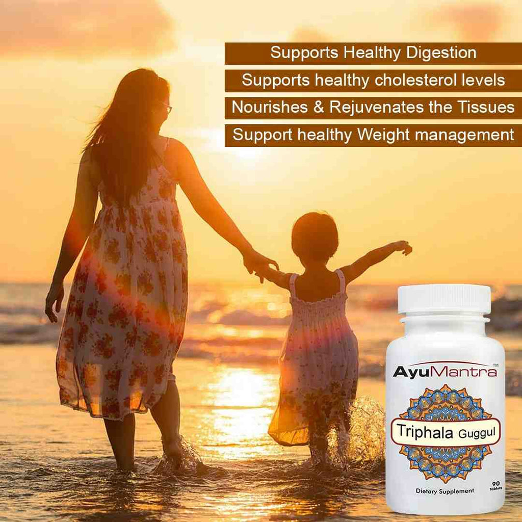 Commiphora Mukul (Guggul), Piper longum (Pippali), Embelica officinalis (Amla), Terminalia chebula (Haritaki), Terminalia belerica (Bibitaki) son los ingredientes.