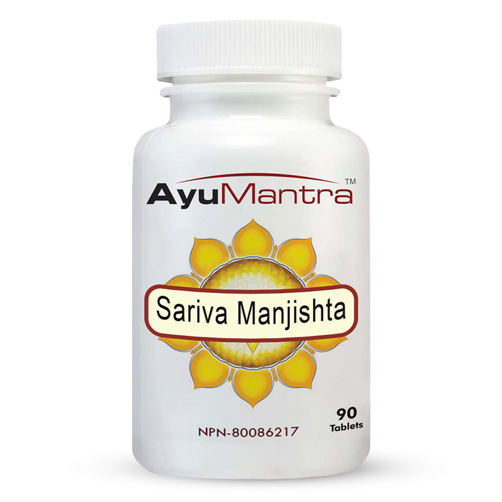Se cree que Sariva y Manjishta tienen efectos sinérgicos que potencian sus propiedades individuales. Suelen usarse en combinación para tratar afecciones cutáneas como el acné y el eccema, y se les atribuye un efecto antiinflamatorio a nivel celular, además de su efecto refrescante en el cuerpo. Su uso regular ayuda a mantener una temperatura corporal óptima y previene infecciones frecuentes al controlar las respuestas inflamatorias excesivas del organismo. Las hierbas de esta combinación favorecen la eliminación eficaz de toxinas de los intestinos, riñones, pulmones y piel, y mejoran la circulación sanguínea.