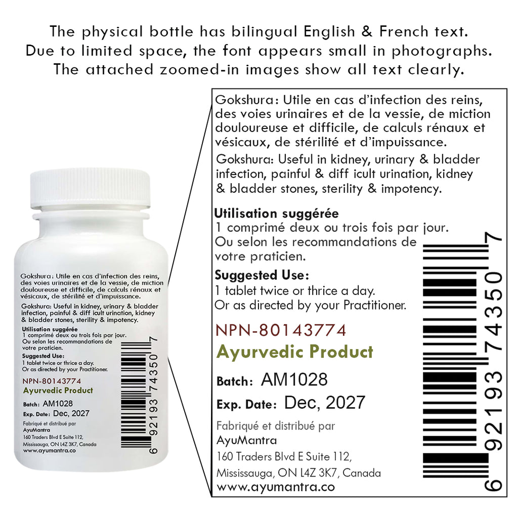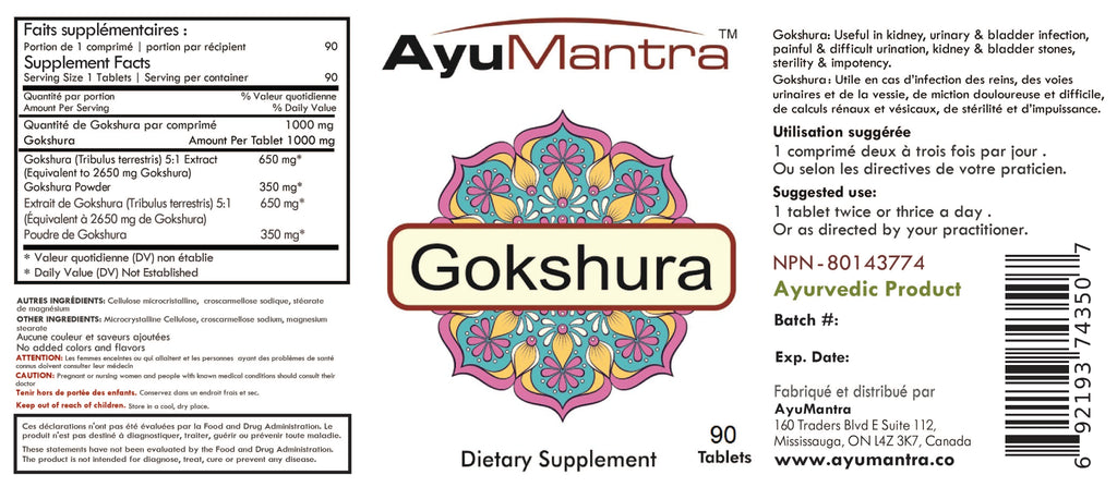 Gokshura, también conocido como Goksuraka, Gokhuri, Gokshra, espina del diablo, cabeza de cabra, abrojo pequeño, Gokharu o Gokhri, es una hierba que mejora la función renal y limpia las vías urinarias tanto en hombres como en mujeres. Su efecto diurético ayuda a controlar los líquidos corporales y fortalece el sistema urinario. También se le conoce como Rasayana y, combinado con Guduchi y Ashwagandha, se utiliza desde tiempos inmemoriales como planta antienvejecimiento y revitalizante del sistema nervioso.