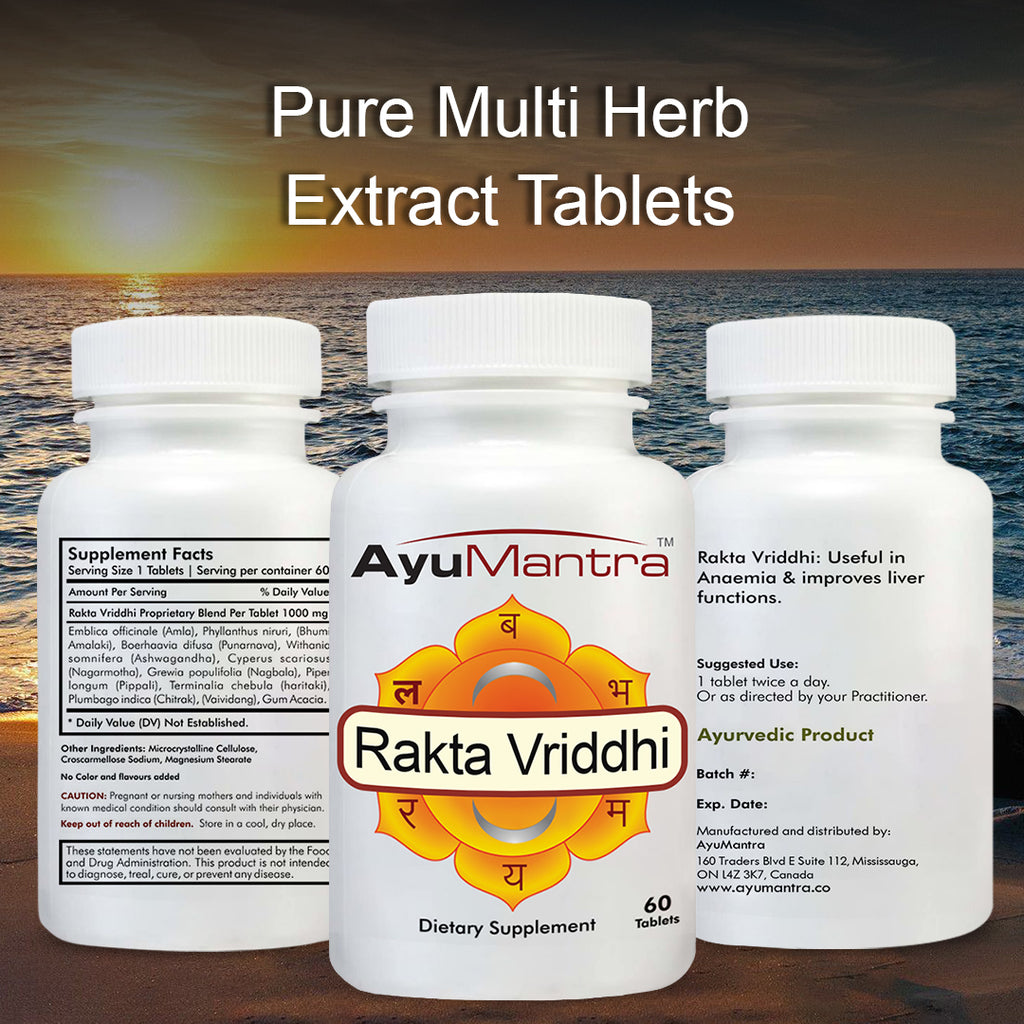 Les comprimés Rakta Vriddhi stimulent la formation du sang et améliorent l'absorption du fer et des micro-éléments. En cas d'échec des préparations à base de fer ordinaires ou lorsqu'elles produisent des effets secondaires négatifs, Rakta Vridhi apporte du réconfort.