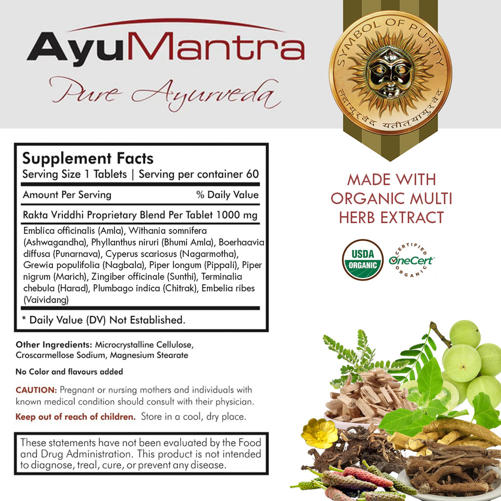 Picrorrhiza kurrroa est rafraîchissant, utile dans les troubles de la coagulation tels que la ménorragie, les saignements nasaux, etc., et préserve le sang. Boerhaavia diffusa est utilisé pour traiter les troubles hépatiques et sanguins, agit comme purificateur sanguin, cardiotonique et traitement de l'anémie. L'Ayurveda croit que les vers sont une cause d'anémie ; Le Vaividanga utilisé dans cette formulation est vermifuge.