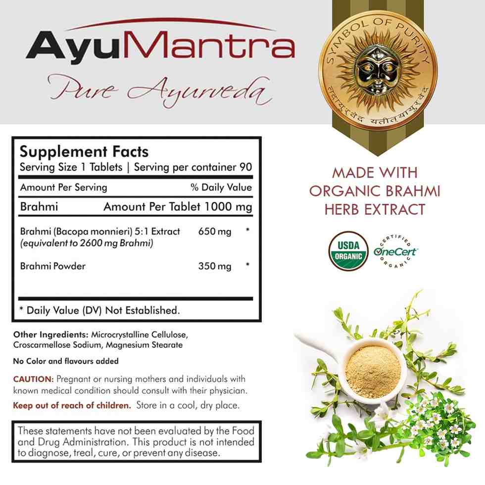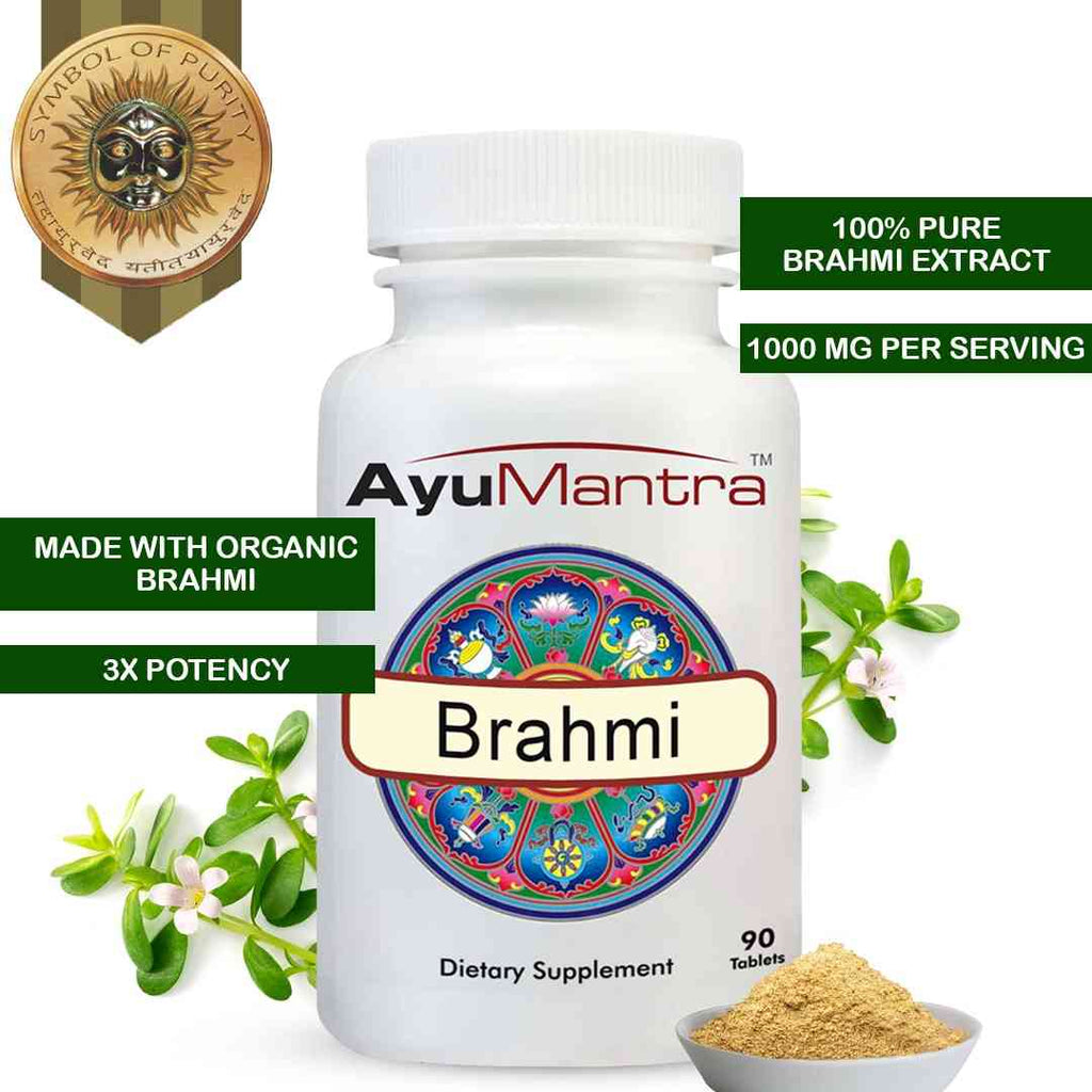 Aide à calmer la fonction hyperactive de Vata dans l’esprit, qui provoque de l’anxiété, de l’insomnie et du stress, ainsi que des troubles fonctionnels de l’esprit. Depuis des siècles, les Vaidyas du monde entier et d'autres médecines folkloriques indiennes utilisent le Brahmi comme tonique cérébral pour améliorer les fonctions cérébrales. Cet effet/propriété a été nommé à juste titre dans les textes classiques sous le nom de MEDHYA RASAYANA, ce qui signifie « améliorateur de la fonction mentale ».
