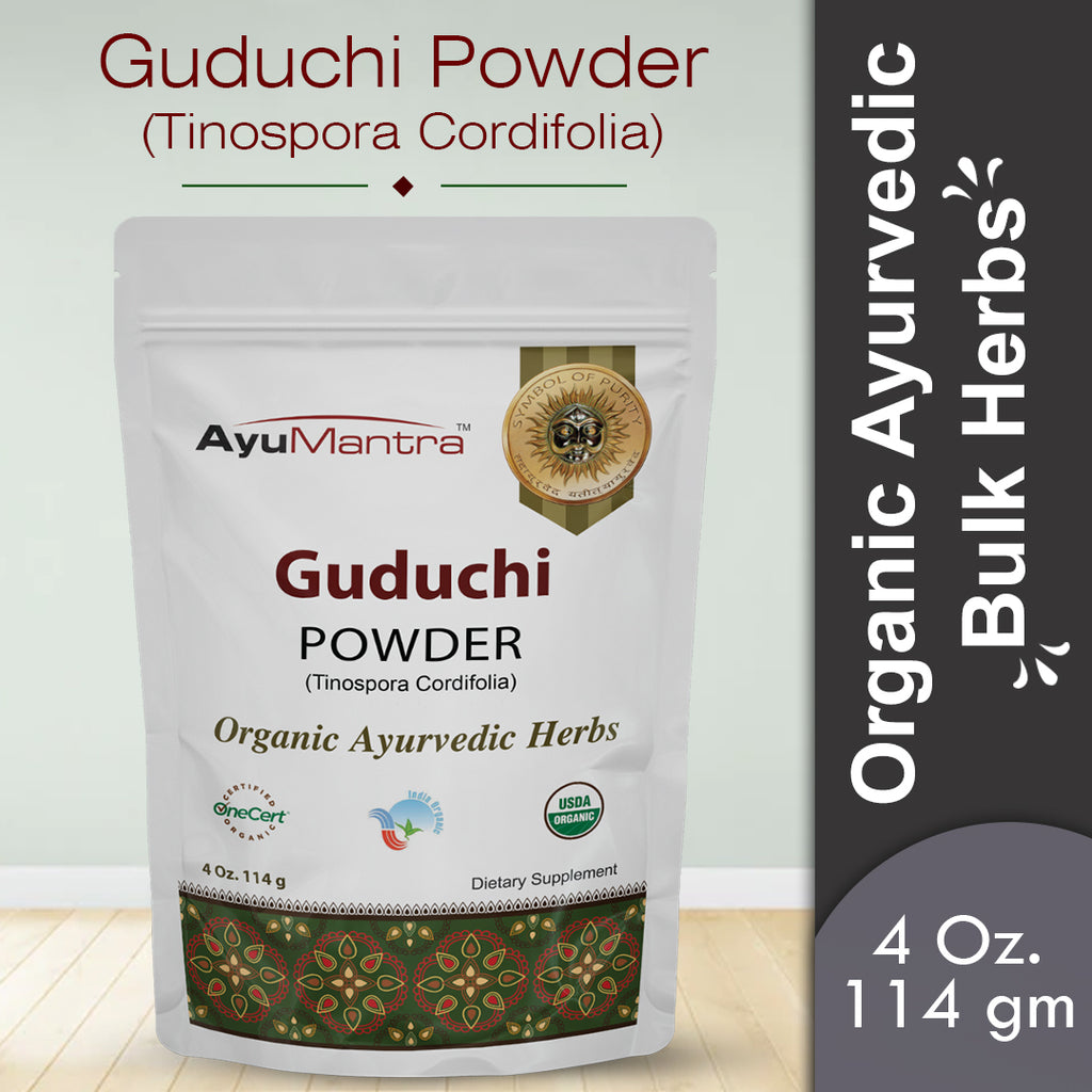 La poudre de Guduchi aide à combattre les infections et les virus provoquant le rhume, la grippe et d'autres affections bactériennes virales. Il peut également être utilisé pour détoxifier le corps lorsqu'il est consommé avec du jus d'aloe vera, du Shatavari et de l'Ashwagandha. Les praticiens de la médecine ayurvédique recommandent le Guduchi contre la goutte, le psoriasis et l'eczéma ainsi que pour renforcer le système immunitaire afin de lutter contre plusieurs maladies.