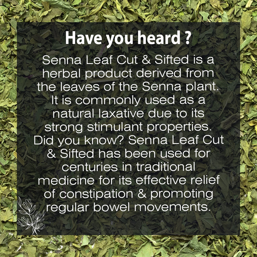 - Senna Leaf (Cut and Sifted) is prized for its proven ability to enhance digestive health.
