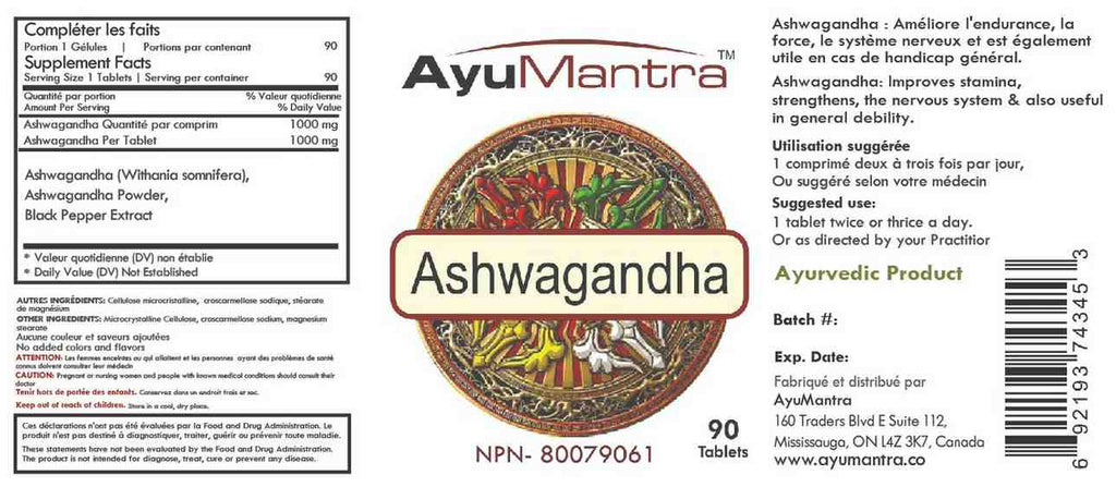90 Tablets (1000 mg). Also known as Indian Ginseng