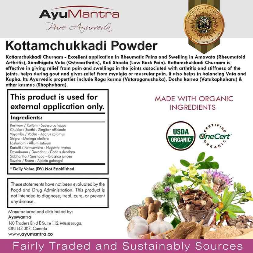 Grazie alla sua combinazione naturale derivata da tradizioni tradizionali, è ideale da utilizzare in abbinamento alle vostre regolari routine di benessere. Le erbe tradizionali note per le loro qualità equilibranti e la loro importanza culturale, come il Chukkadi (zenzero) e il Kottam (costus), vengono combinate per creare questa polvere di erbe.