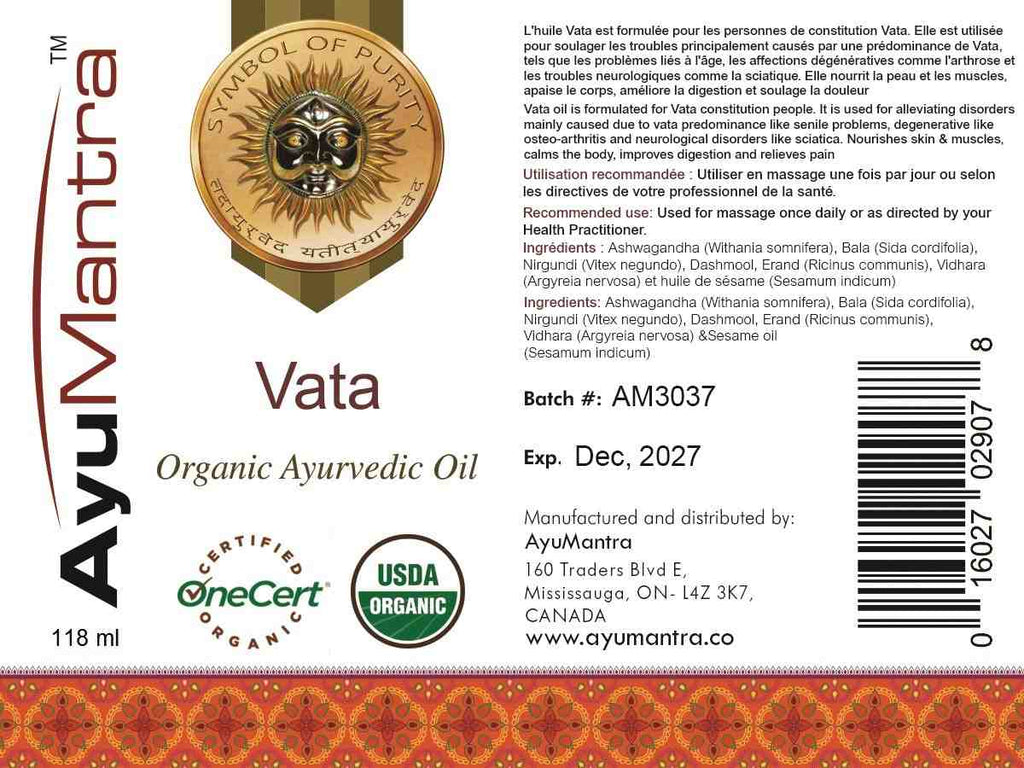 Vata è il fenomeno che aiuta il corpo a muoversi e funzionare in modo efficace. Aiuta a eliminare le scorie e rafforza i polmoni, rendendo la respirazione fluida. Questo rimedio erboristico è anche un calmante estremamente efficace e aiuta a migliorare il sistema digestivo. Aiuta anche a eliminare nervosismo, ansia, panico e paura. Ha un effetto rilassante sulla mente, che in definitiva funziona come rimedio per i disturbi del sonno e l'insonnia. La composizione erboristica di questo olio aiuta a ridurre le contrazioni e l'irritazione dei nervi e migliora il funzionamento del sistema nervoso in generale.