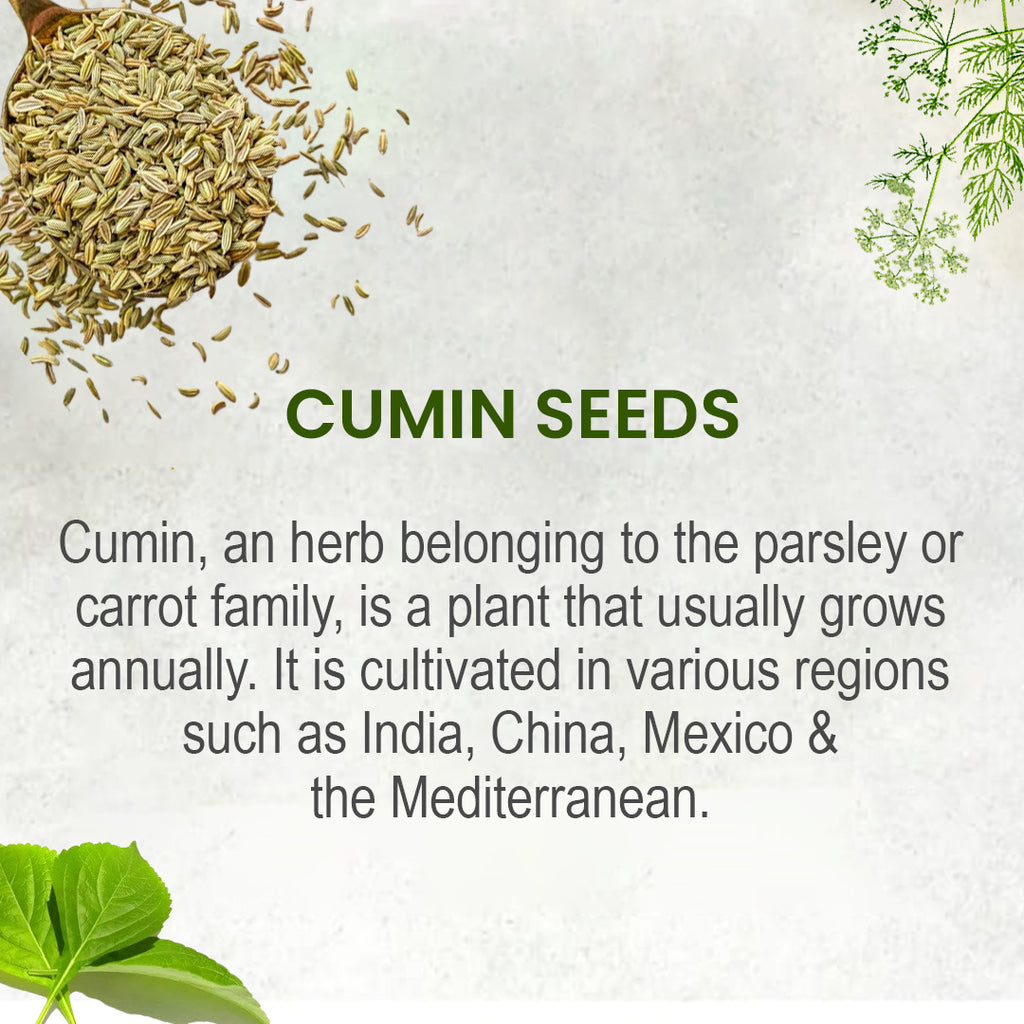 Cumin, an herb belonging to the parsley or carrot family, is a plant that usually grows annually. It is cultivated in various regions such as India, China, Mexico, and the Mediterranean. The dried fruits of the cumin plant are known as seeds and are commonly used in various culinary applications such as spice blends, chutneys, stews, soups, and breads. In addition, the oil extracted from the seeds is used in perfumes, spirits and medicinal preparations. Cumin seeds have a distinctive earthy aroma and a slightly bitter, pungent flavor. When roasted, the seeds develop a nutty flavor.