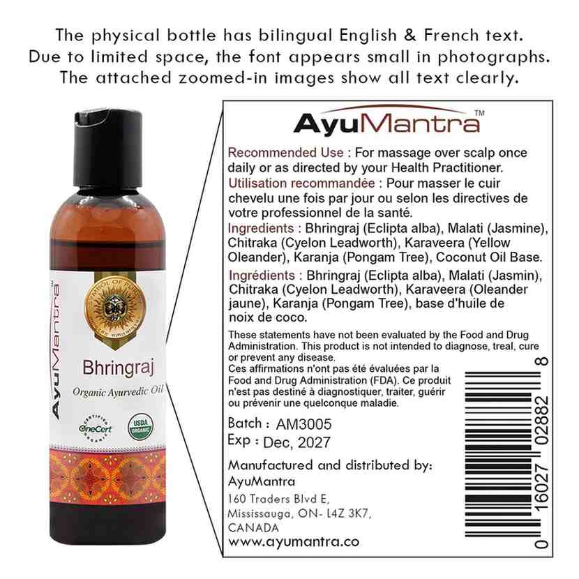 Bhringraj-olie bevordert een gezonde haargroei en een betere nachtrust. Het verkoelt ook het hoofd en kalmeert de geest, waardoor het een uitstekende keuze is voor het masseren van hoofd en voeten. Bhringraj kan ook helpen bij het verwijderen van pitta uit het zenuwstelsel en de huid. De unieke combinatie van bhringraj met kruiden zoals triphala, nilotpala en sariva blijkt een complete haarverzorgingsoplossing te zijn. Het gebruik ervan voorkomt vroegtijdige vergrijzing van het haar, roos, droog haar, haaruitval en dun haar. Bhringraj-olie is de meest populaire haarolie voor dagelijkse hoofdmassage.