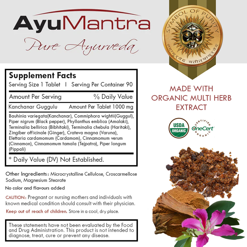 Um produto anti-inflamatório totalmente natural é chamado Kanchanar Guggulu. Nesta composição, Kanchanar (Boerhavia diffusa), um potente medicamento anti-inflamatório da Ayurveda, é combinado com Guggulu para ajudar a prevenir e reduzir o crescimento de lesões císticas e tumores no corpo. O notável medicamento Kanchanar Guggulu é utilizado para tratar uma variedade de desequilíbrios corporais causados por substâncias nocivas. A tradicional mistura de ervas é recomendada para o controle e prevenção de todos os tipos de crescimento tumoral no corpo, particularmente em tecidos moles. Da mesma forma, Kanchanar Guggulu trata eficazmente a inflamação dos tecidos moles.