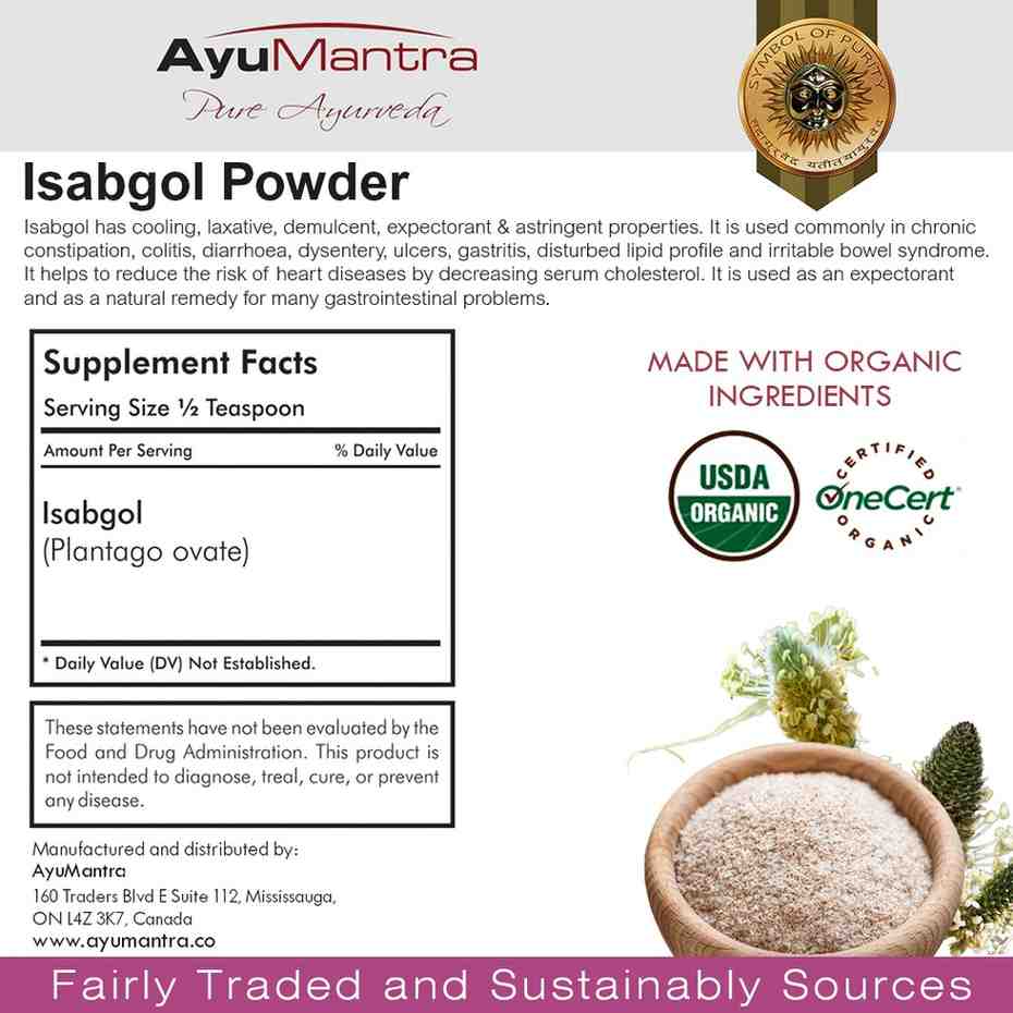 Исабгол помогает поддерживать здоровый уровень глюкозы в организме. Он очищает желудочно-кишечный тракт от непереваренной пищи и выводит природные токсины и жиры. Исабгол также поддерживает уровень холестерина и приводит его в норму. Состояние кишечника требует питания и питательных веществ, а также средств с целебными свойствами для слизистых оболочек желудка и кишечной ткани. Порошок при смешивании с водой превращается в слизистое вещество, которое очищает кишечник от твердого и скопившегося кала.