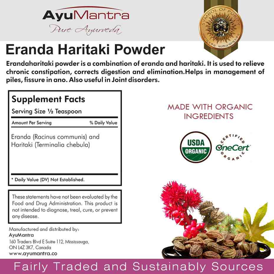 诃子粉(又名甘达婆诃子)是一种用于治疗炎症和消化系统疾病的草药。它能清除体内自然产生的毒素。这种阿育吠陀配方已被证明对便秘和胀气有效。它能软化肠道内积聚的粪便,而不会损伤肠道功能。它能无痛无害地扩张排泄通道。